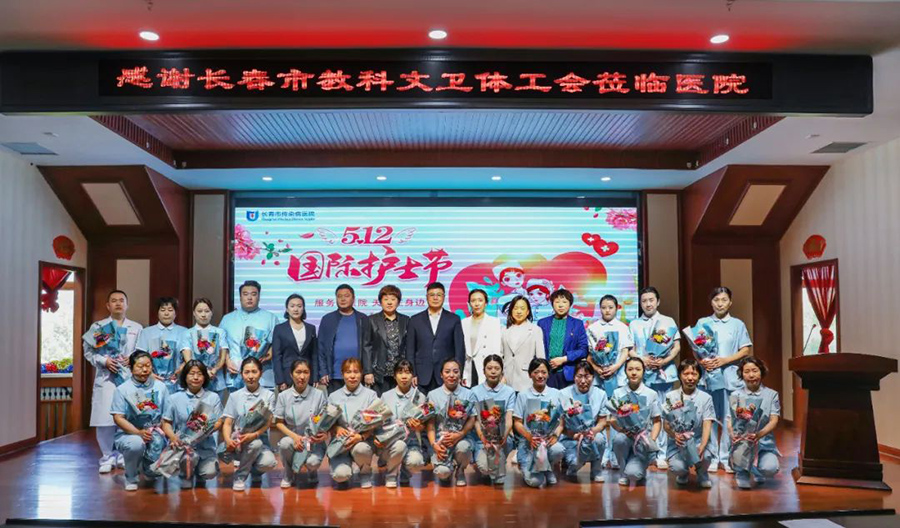 服务在医院,天使在身边。在第112个国际护士节即将来临之际,5月11日上午,长春市教科文卫体工会主席闻凤学、部长尹宇奇来到长春市传染病医院,向一线护理人员送来了亲切的问候和慰问金。长春市传染病医院党委副书记陈彤彤,副院长张健、刘政杰,纪检书记徐立芳,工会主席张弢及20名护理人员代表,共50余人参加活动。活动由张弢主持。