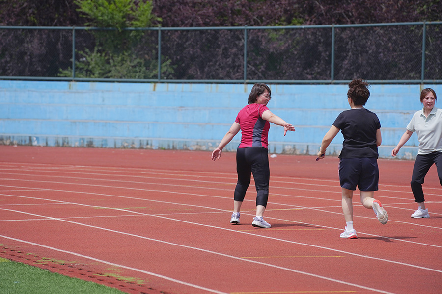 在45岁以上组4×100米接力项目中,院领导纷纷来到场地与职工们同场竞技,用自己的行动作出身先士卒、拼搏进取的表率。在首届趣味运动会中,院领导也派出代表参赛,这已经成为两院的一项光荣传统,在医院高质量发展中,不论任何时候,领导都发挥着“领头雁”的作用,带领大家向前冲。