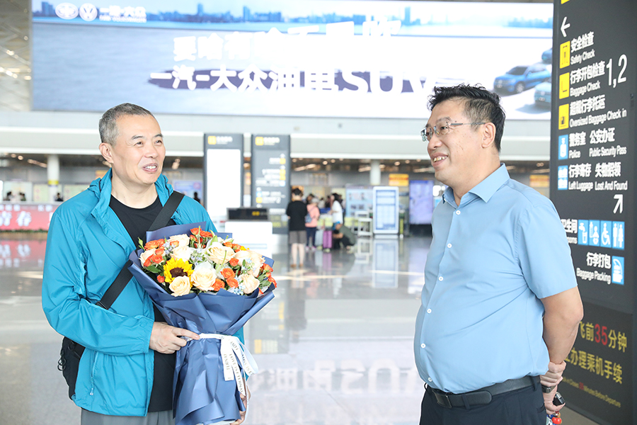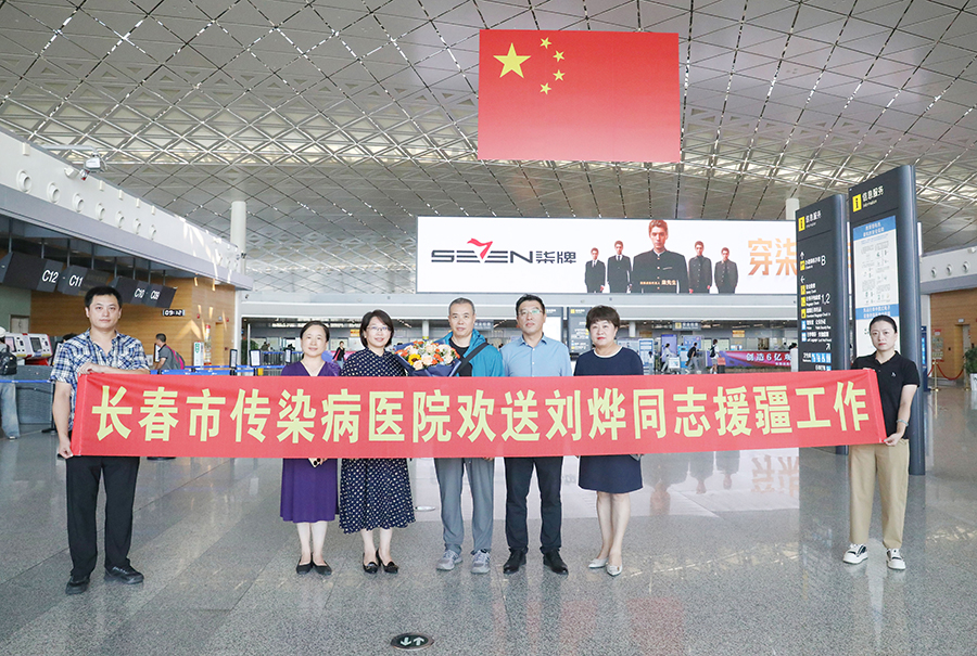 8月14日,长春市传染病医院党委书记张皞男,党委副书记、院长曹阳,党委副书记陈彤彤,副院长张健早早来到机场,手捧鲜花,共同欢送刘烨医生。