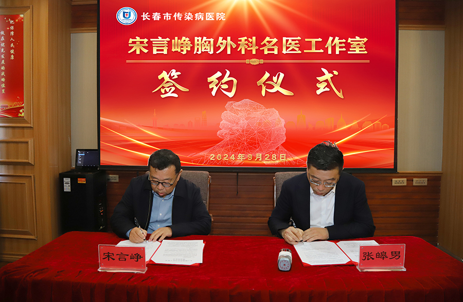 为进一步推动优质医疗资源协同融合,提升我院胸外科综合诊疗水平,为区域胸外科患者提供连续、优质、便捷的医疗服务,9月28日,上海市公共卫生临床中心胸外科宋言峥教授团队名医工作室签约暨揭牌仪式在长春市传染病医院举行。