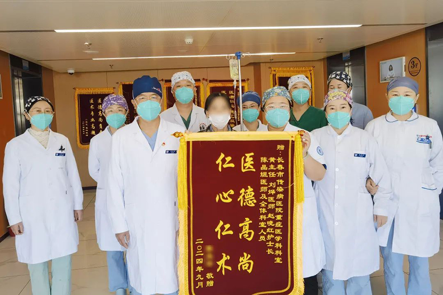 “你们太认真负责了,我住院这段时间,真是多亏了你们啊,我才能好转出院!”近日,长春市传染病医院重症医学科(七疗区)内发生了温暖的一幕,患者刘女士(化名)将一面绣有“仁心仁术 医德高尚”8个金色大字的锦旗送到了科主任黄颖新的手中,言辞中尽是对医护团队的感激之情。