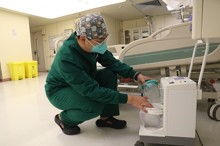 黄颖新主任与刘烨医生得知情况后,迅速行动,与护士张丽、姜博文、王奕博、贾璐一同开始了抢救。根据现场的情况,黄颖新主任考虑是血块堵塞气管插管所致。为此,他决定将气管插管的气囊完全放开,以确保患者有氧气供应。