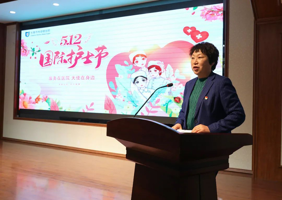 服务在医院,天使在身边。在第112个国际护士节即将来临之际,5月11日上午,长春市教科文卫体工会主席闻凤学、部长尹宇奇来到长春市传染病医院,向一线护理人员送来了亲切的问候和慰问金。长春市传染病医院党委副书记陈彤彤,副院长张健、刘政杰,纪检书记徐立芳,工会主席张弢及20名护理人员代表,共50余人参加活动。活动由张弢主持。