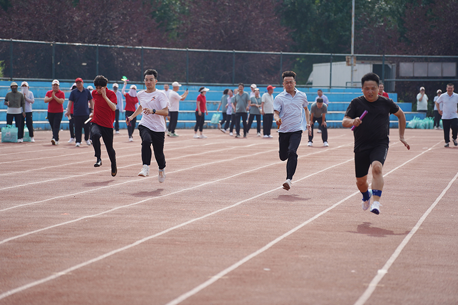 在45岁以上组4×100米接力项目中,院领导纷纷来到场地与职工们同场竞技,用自己的行动作出身先士卒、拼搏进取的表率。在首届趣味运动会中,院领导也派出代表参赛,这已经成为两院的一项光荣传统,在医院高质量发展中,不论任何时候,领导都发挥着“领头雁”的作用,带领大家向前冲。