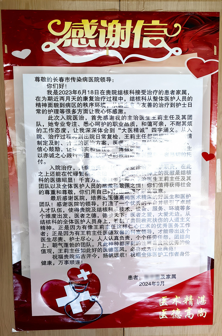医护真情关怀,家属深情致谢