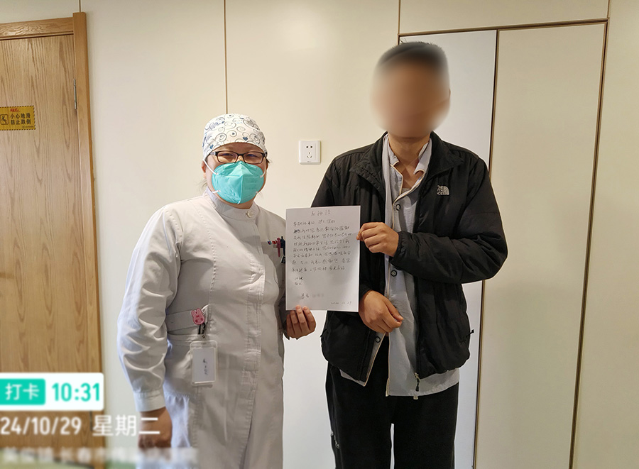 经治医副主任医师肖军每天与牛先生沟通,解答他的疑问,科普疾病知识及治疗方法。通过实际行动让牛先生认识到,这里没有任何偏见,全体医护人员会给予他平等的关怀与尊重。