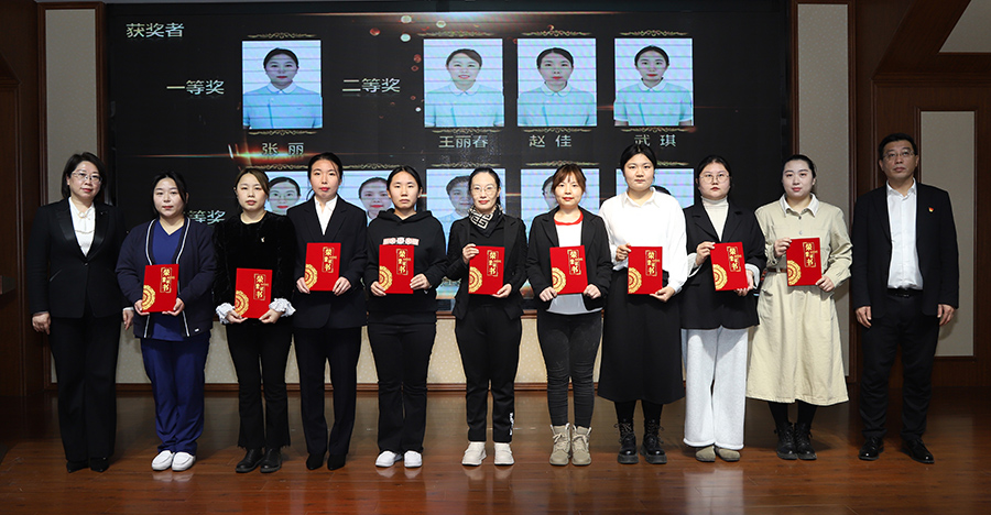 ▲张皞男书记、曹阳院长为2024年年终护理理论和技能竞赛获奖集体颁奖