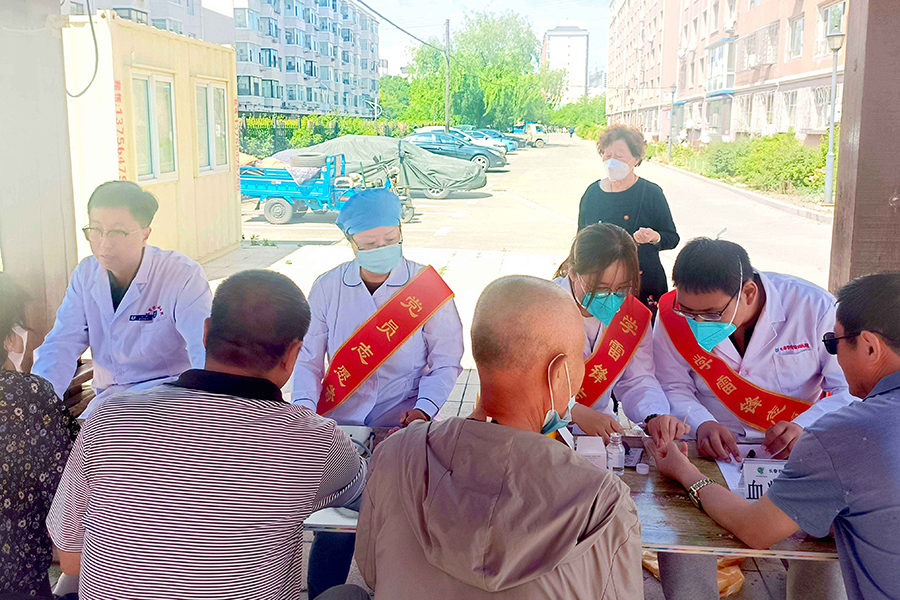 为进一步传承和弘扬红医精神,突出党建引领作用,推动党建工作与业务工作深度融合,使优质医疗资源下沉,着力解决百姓看病难的问题,6月2日,长春市传染病医院输血科主任潘文池,重症医学科医生汪洋,护士方缘、李陆陆以及党办干事周禹含来到绿园区青欣二路银融社区,为社区居民送去义诊服务。